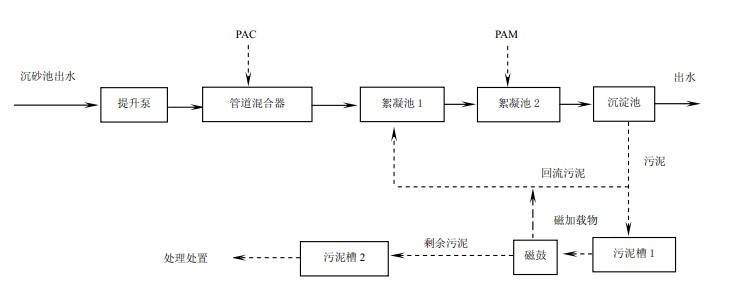 用新工藝,加入磁粉加速沉淀,節(jié)約污水處理時(shí)間,整合設(shè)備占地面積小,運(yùn)營成本低